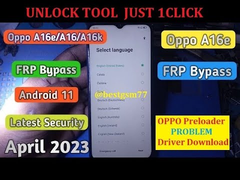 OPPO CPH2421 A16e, A16, A16S, A16K New Security Reset Pin Lock Frp OPPO Preloader problem DRIVER U-T