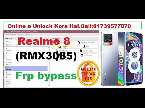in this video: Realme 8 (RMX3085) Frp bypass by Android Multi Tool Mobile Unlock Fix Onlinea Unlock Online Unlock online agent Online…