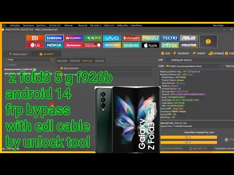 z fold3 5 g f926b android 14 frp bypass with edl cable by unlock tool